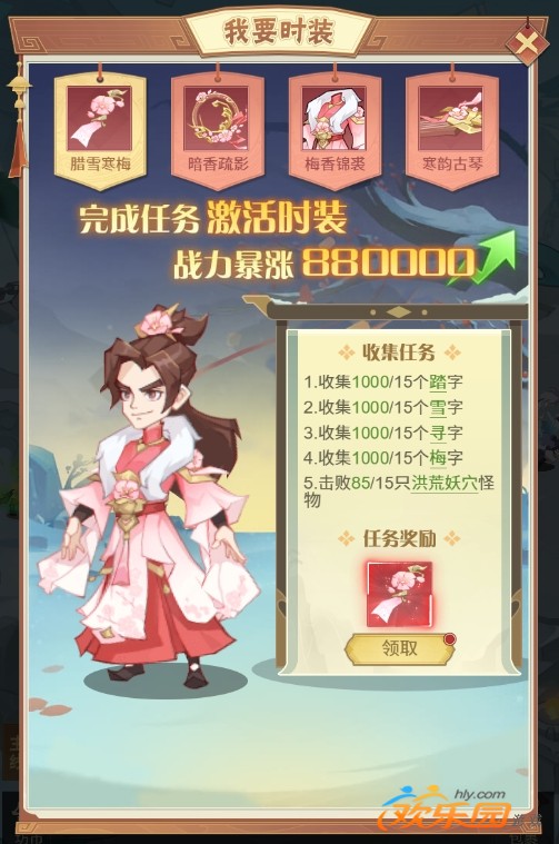 完成对应收集任务可以获取任务奖励,获取绝版时装,战力大幅暴涨哦